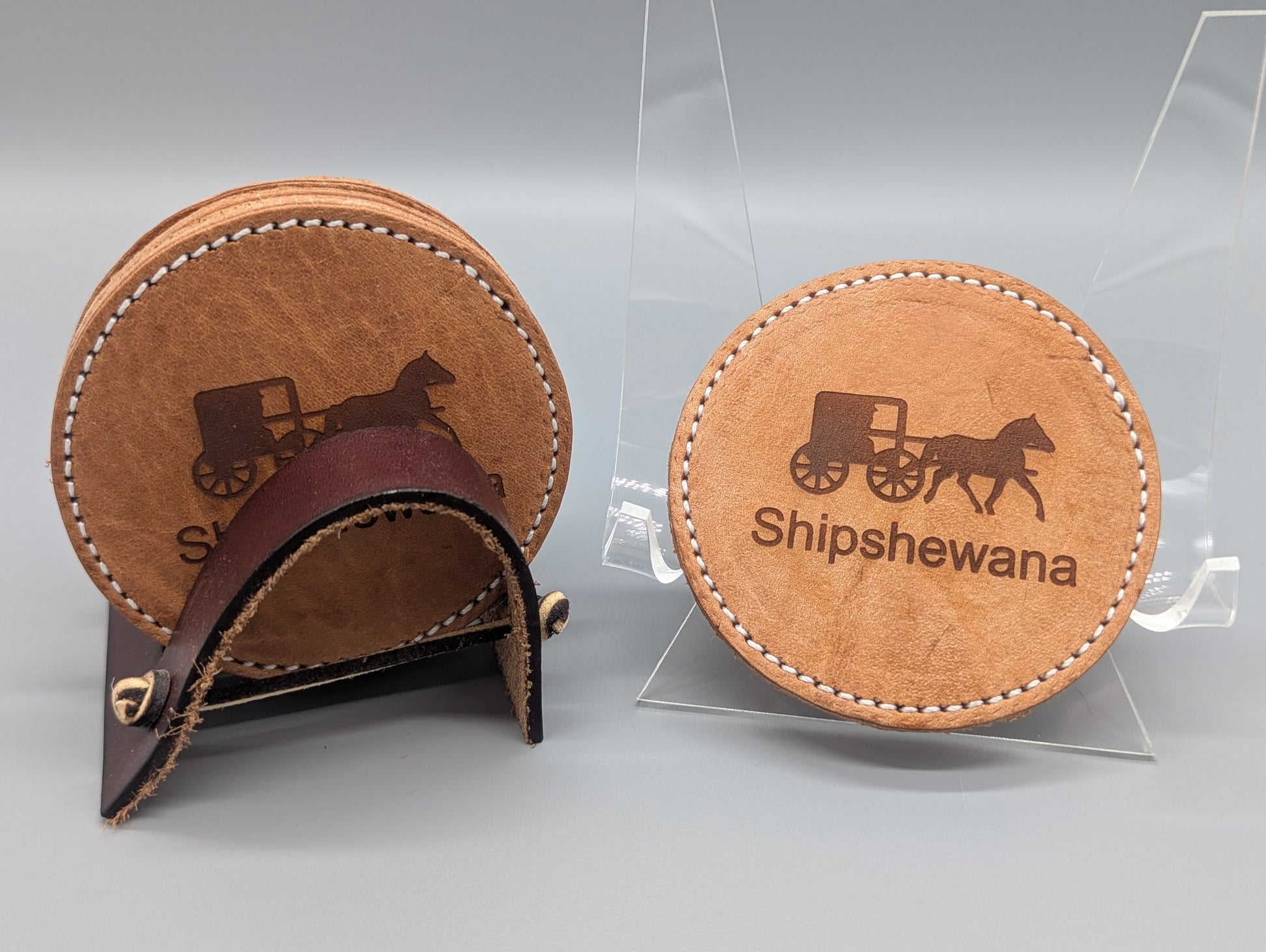 Locally-Made Shipshewana Horse and Buggy Leather Coasters, Set of 4