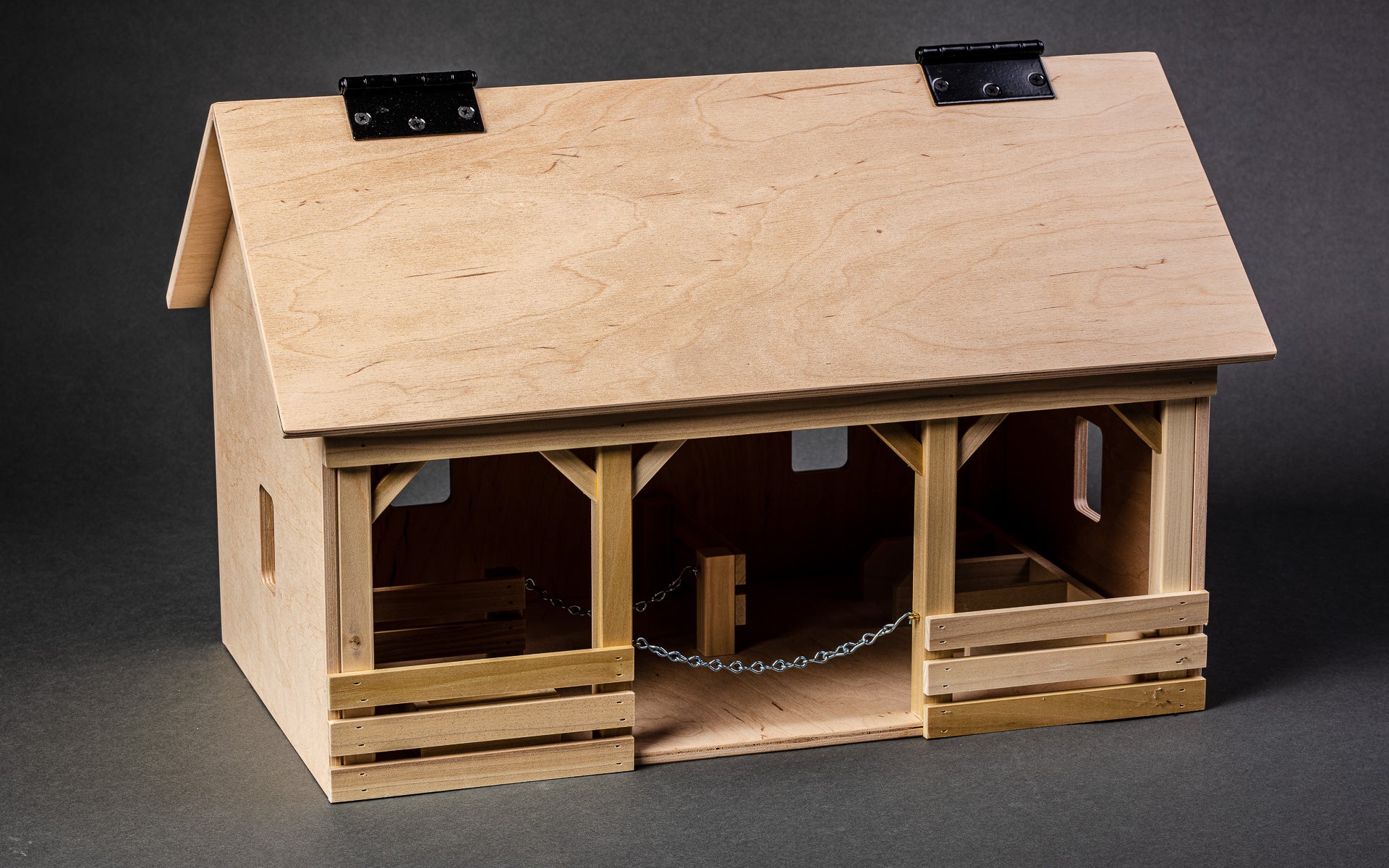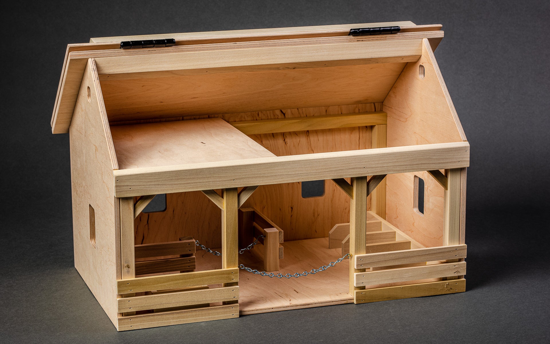 Crafted locally, this wooden toy barn promises endless imaginative play for your child. Built with excellent quality, it’s designed to last and withstand years of fun. 20" x 12" x 14". Call for shipping options.